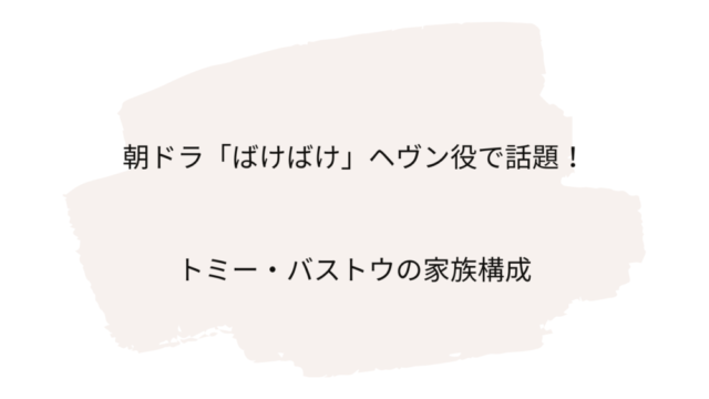 朝ドラ「ばけばけ」ヘヴン役で話題!トミー・バストウの家族構成