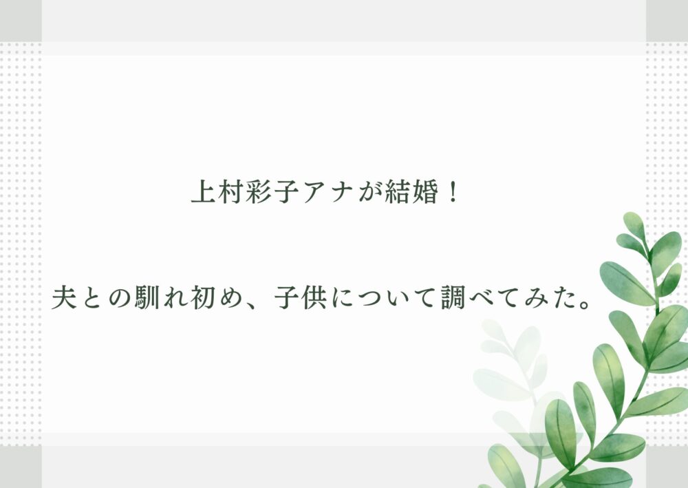 上村彩子アナが結婚!旦那(夫)・馴れ初め、子供について調べてみた。